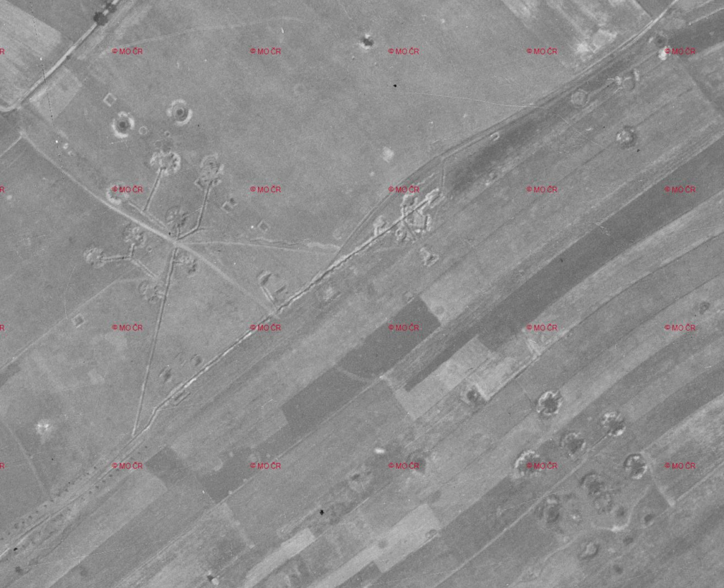 Pozice protiletadlové baterie lze skutečně dohledat na poválečných leteckých snímcích.